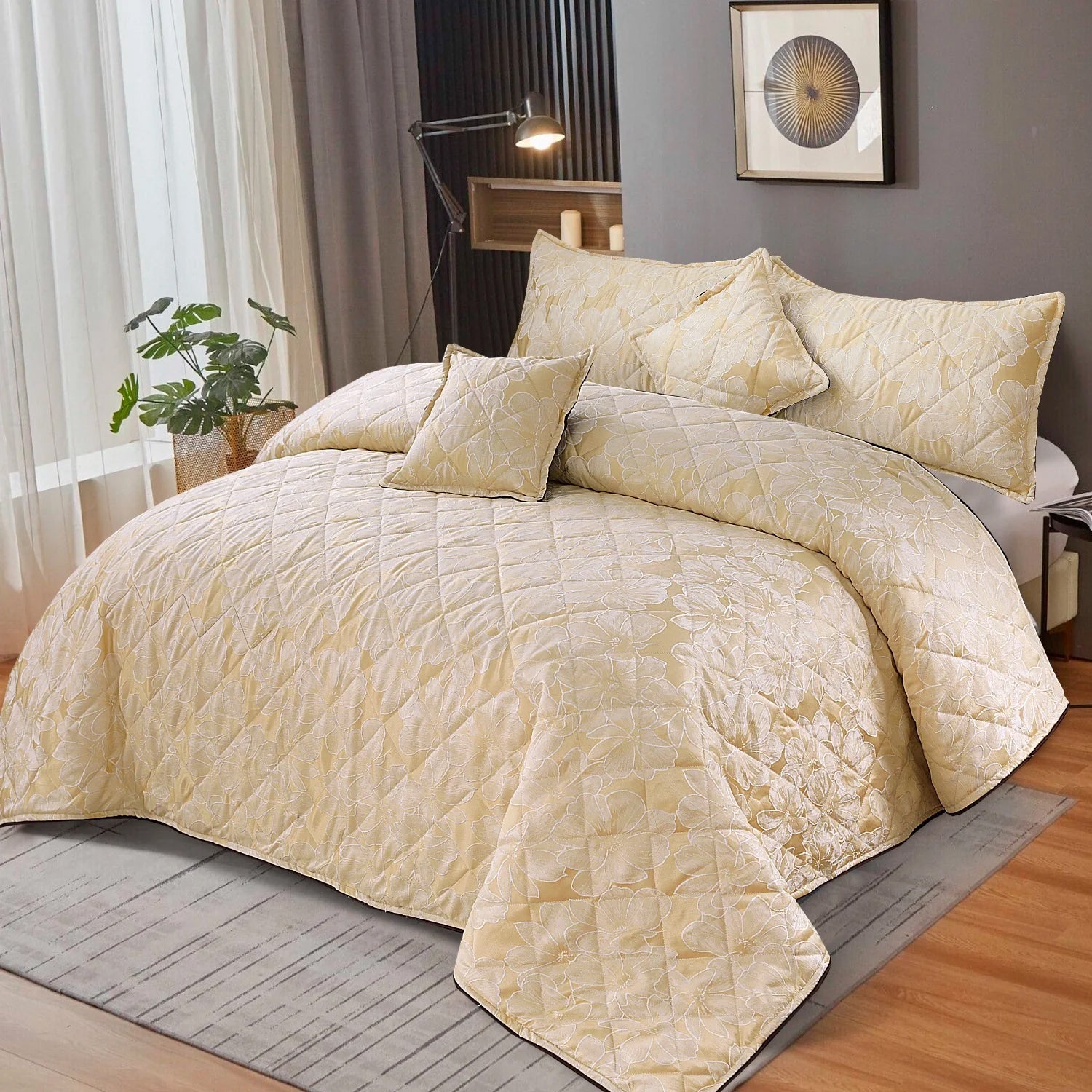 5Pcs King Size Plachi Bed Spread Set - Luxor Floral Beige