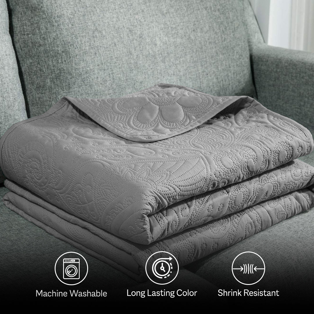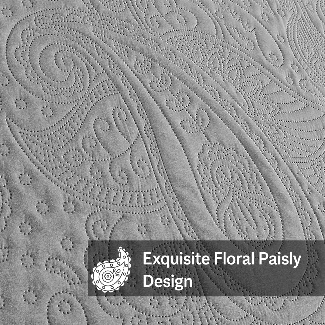Floral - 3Pcs King Size Quilted Bedspread Set - Silver